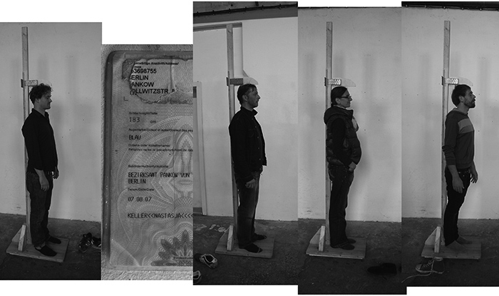 Same Standing is an ongoing artwork/curatorial project, planned as series of group exhibitions, to occur at different locations. Having only one selection criteria - the artists' height (determined by data from id or measurement). The ones who match the preannounced height (which is sometimes randomly chosen, while others for specific reason) are automatically allowed/invited trough open call to show work together. Resulting in unpredictable, but at the same time objective groupings, replacing the usual ways of gathering, by notions of taste, quality, subject matter, friendships etc., on 16.8.2014 Same Standing /166 took place at Kreuzberg Pavillon, Berlin, and it was also part of Project Space Festival - see link. The height of 166cm for artists was determined by a random draw from the numbers between 150 and 200 (representing common human heights in centimeters) done trough the website www.random.org. An open call was announced by Kreuzber Pavillon, after the oficcial measurement process, six participants were approved to submit artworks (one by each), these were: Karin Beulke; Natacha Mankowski; Marlene Stark; Danielle Zimmermann; Anna Livia Löwendahl - Atomic; Antoanetta Marinov. For more info and photo documentation follow the link: http://kreuzbergpavillon.tumblr.com/14-08-16