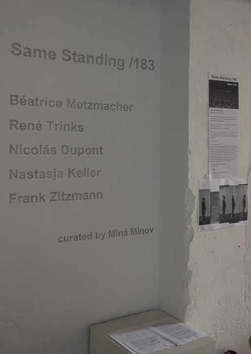 from 5th until 27th of September 2014, Same Standing /183 was organized in the context of the group exhibition "Bulgarische Arbeit" at GEH8, Dresden. With the participation of: Béatrice Metzmacher, René Trinks, Nicolás Dupont, Nastasja Keller, Frank Zitzmann text for the exhibition "Same Standing /183":