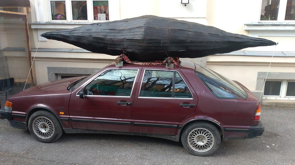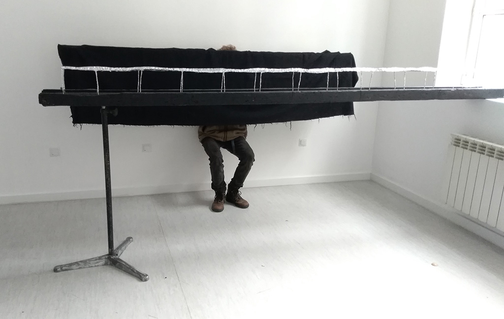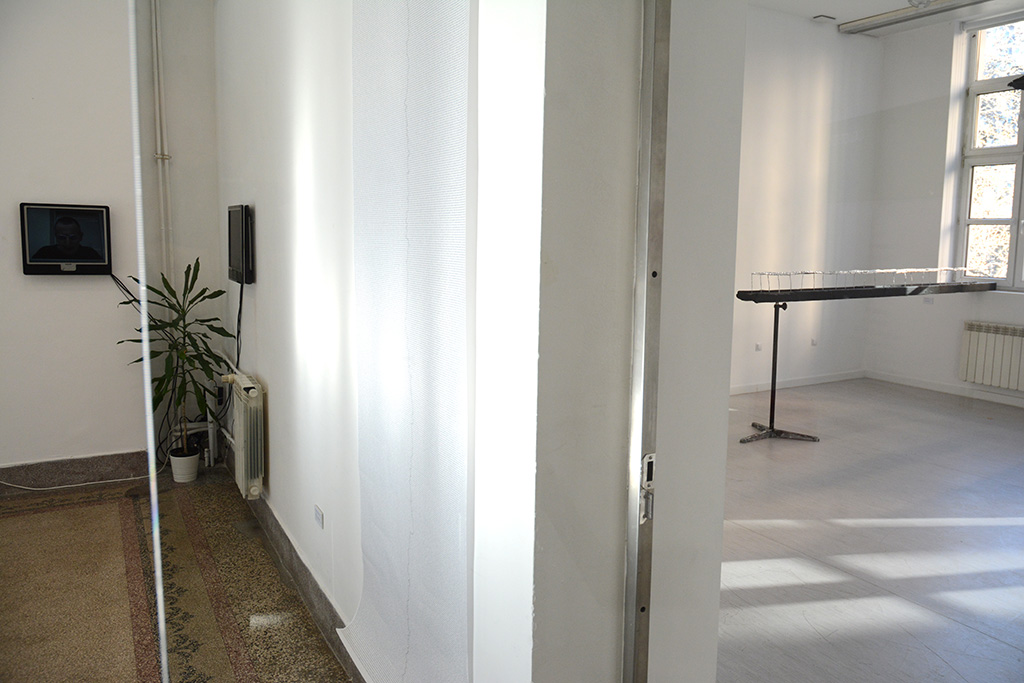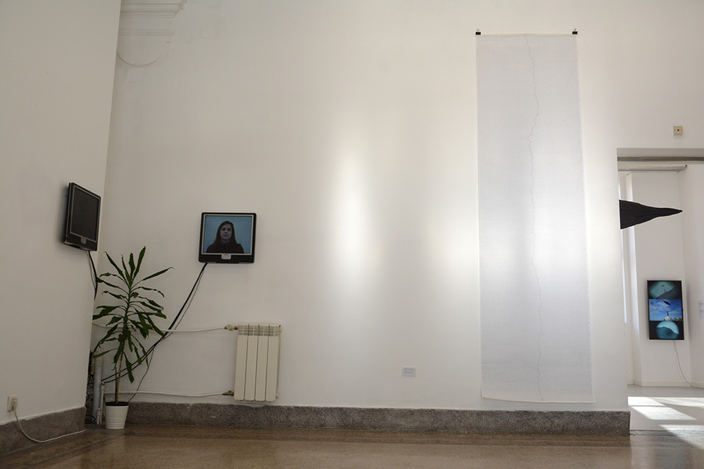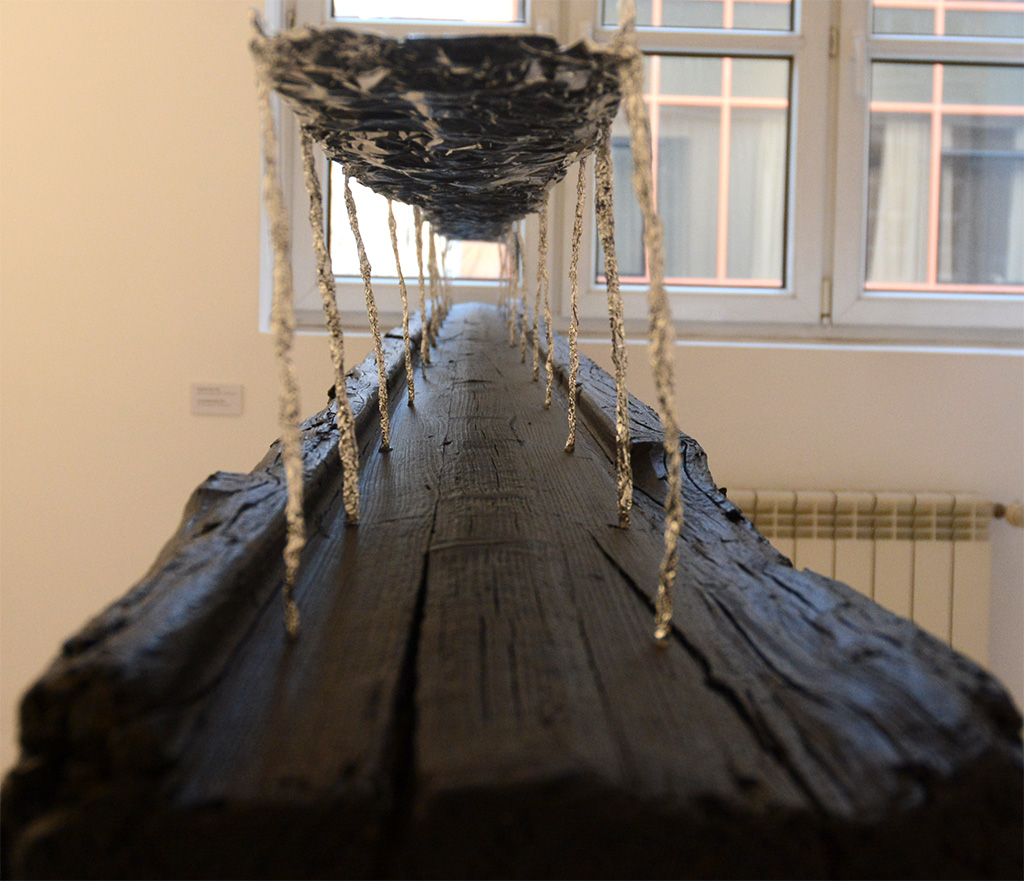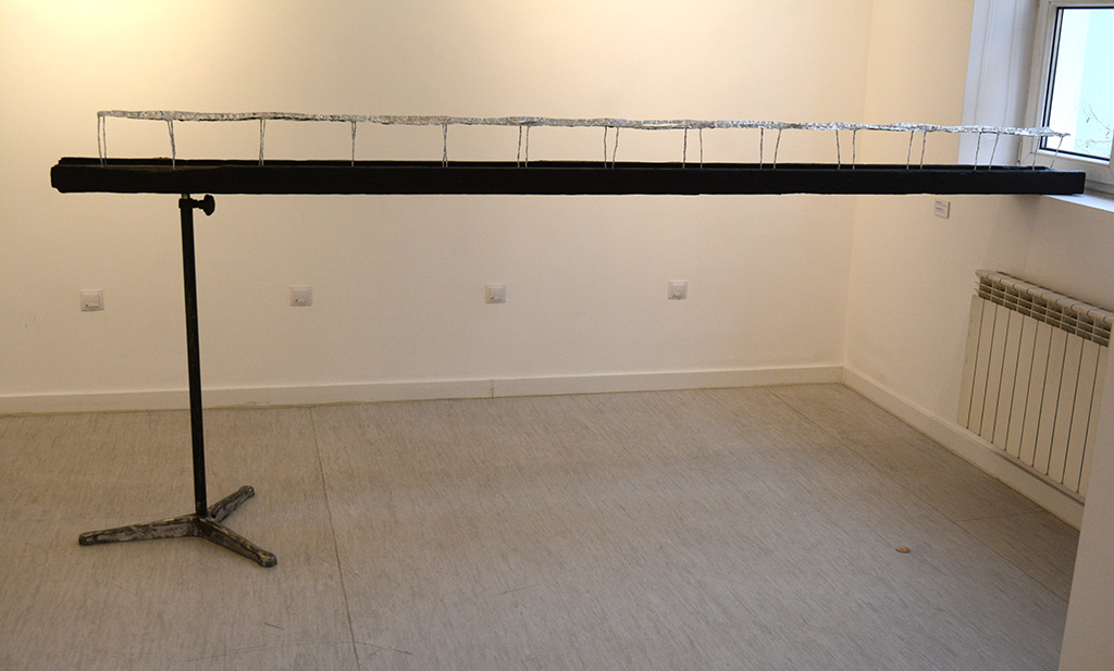 exhibition view with the performative object from Over the top of Kamen Del /2012 /430cm lenght