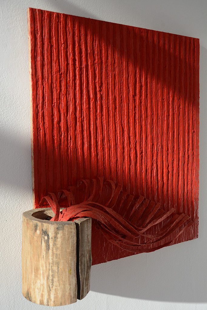 Unmarketable object /2022 /wood, printing ink, rope /60x60cm